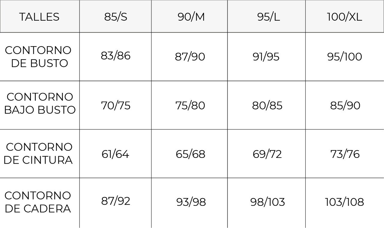 4- Con las medidas busca tu talle en la tabla siguiente:
